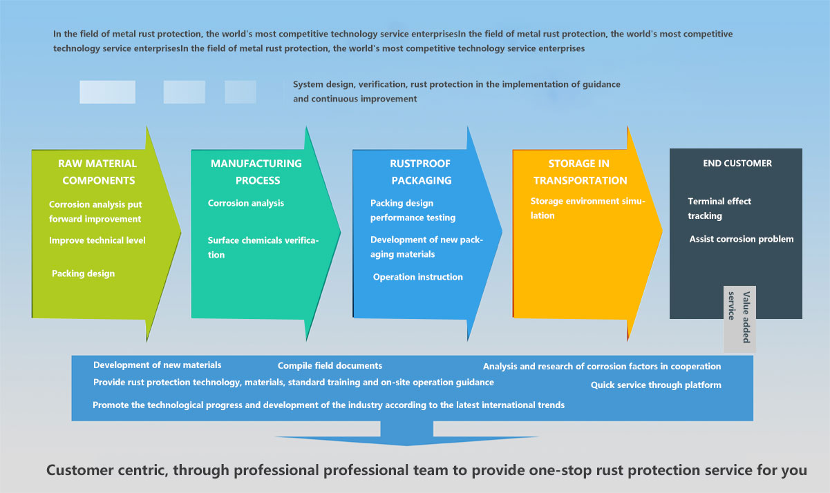 Company mission: with the metal rust protection business as its own responsibility, through the system solutions and environmental protection materials, to create value for customers, to save money for the community Source. Company vision: in the field of metal rust protection, become the world's most competitive technology service enterprises. Corporate values: scientific rigor, efficient implementation, continuous innovation, common development